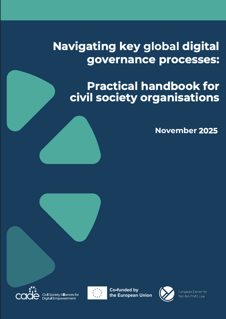 European Center for Not-for-Profit Law (ECNL) has published two sets of publications as part of the Civil Society Alliances for Digital Empowerment (CADE) initiative, designed to help civil society navigate global digital governance more effectively. The first publication, titled ‘Navigating key global digital governance processes: Practical handbook for civil society organisations’ is a handbook that [...]... (See more)