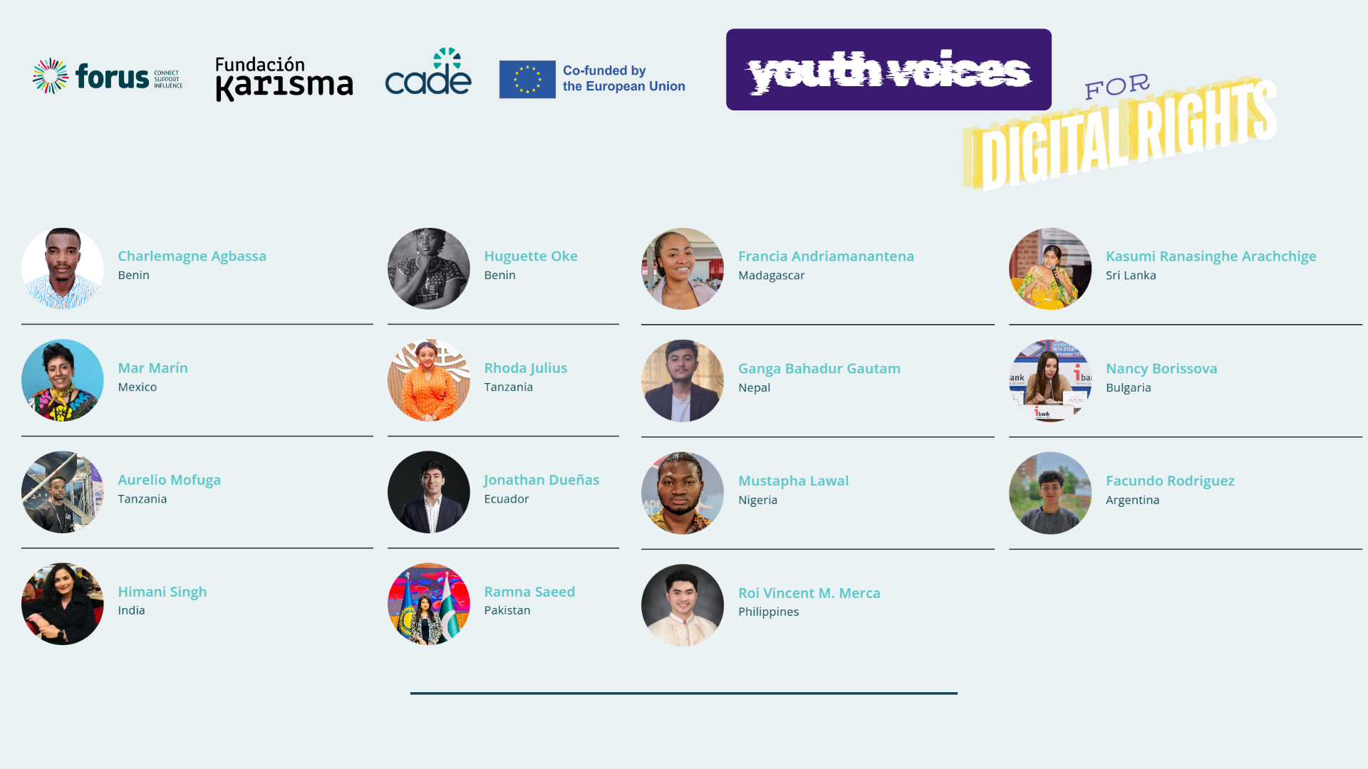 This new initiative by the CADE consortium, led by Forus with support from Karisma, brings together a group of 15 young advocates from Africa, Asia, Latin America, and Europe. They work on issues such as digital rights, equality, countering misinformation, language preservation, mental health, and youth participation.