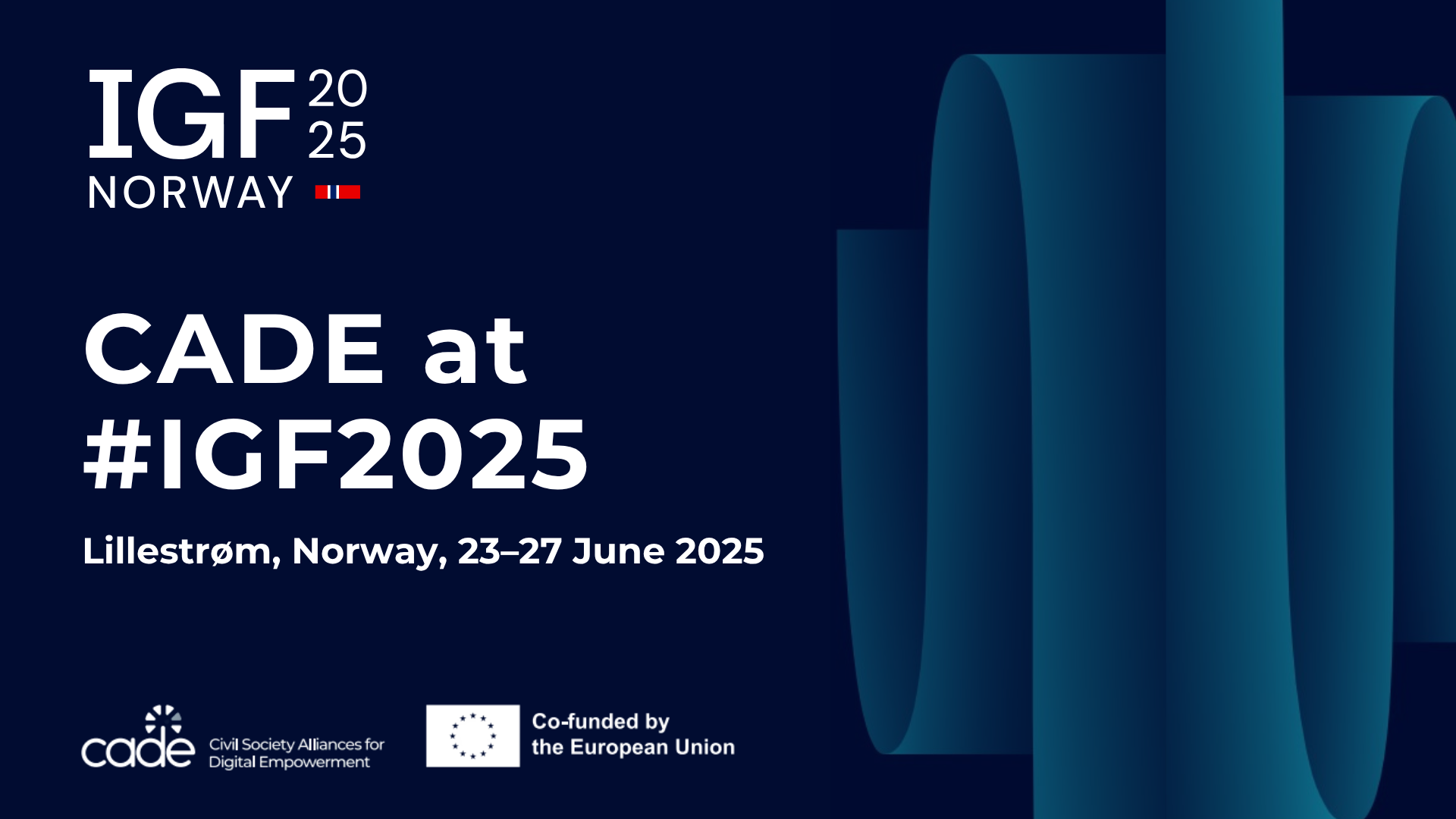 CADE at IGF 2025: Driving critical conversations on digital rights We’re excited to announce that CADE will be actively participating in IGF2025, taking place in Norway, from 23–27 June 2025. Join us for: We’re also proud to contribute to two sessions: Visit our booth (number 57) to learn more about our activities and resources, including the winners of [...]... (See more)