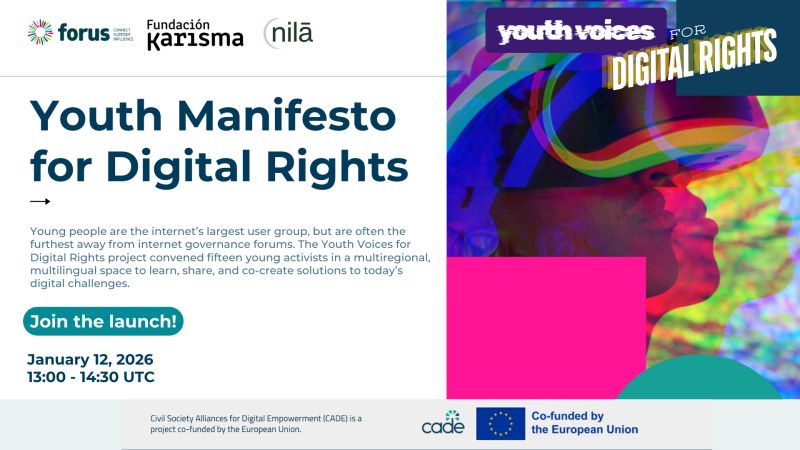 On 12 January 2026, CADE will host a virtual open house to launch the Youth Manifesto on Digital Rights and showcase participants’ work. Register and be part of the conversation: Discuss directly from young leaders and add your voice to a growing movement for rights-respecting digital futures.
