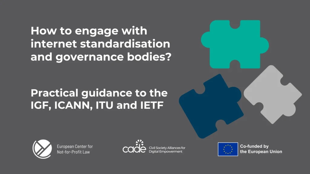 As part of the Civil Society Alliances for Digital Empowerment (CADE), ECNL developed four individual explainers, focusing on four technical standardisation and governance bodies that play a central role in the functioning of the internet: the Internet Governance Forum, ICANN, ITU, and the IETF.